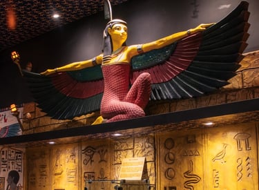 Inspirado nos templos egípcios, o Deuses e Faraós oferece uma experiência gastronômica imersiva, onde cada refeição é uma viagem ao fascinante mundo da antiga civilização egípcia.
