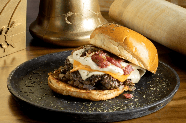 Hambúrguer artesanal smash com um blend de carnes nobres, com maionese de bacon crocante e queijo muçarela derretido no pão de brioche.