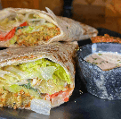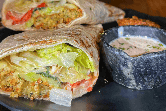 Kebab de FALAFEL, com especiarias sírias - libanesas, molho de tahine com iogurte, tomate grape, alface, abobrinha enrolado com pão folha - síria.