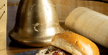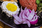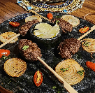 Delicio kibe cru, feito com carne de primeira, temperado com especiarias árabes. Acompanha coalhada artesanal, cebola roxa fresca, pão Sírio e azeite.