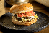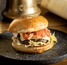 Hambúrguer artesanal smash com um blend de carnes nobres, alface, tomate grape, queijo muçarela, queijo cheddar e maionese da casa no pão de brioche.