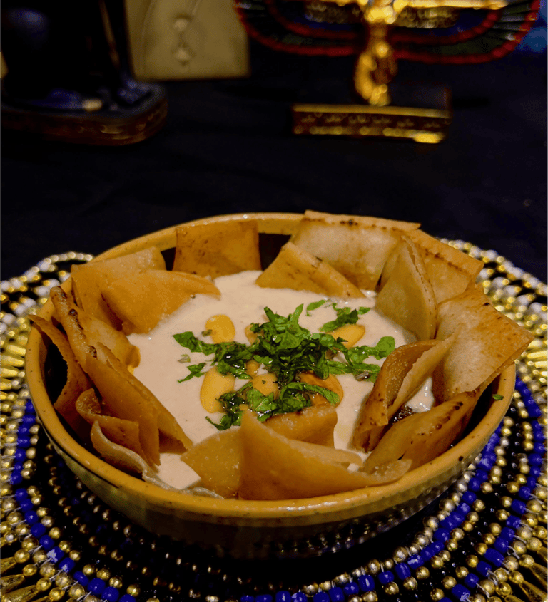 Descubra uma experiência gastronômica imersiva que transporta você ao Egito antigo.