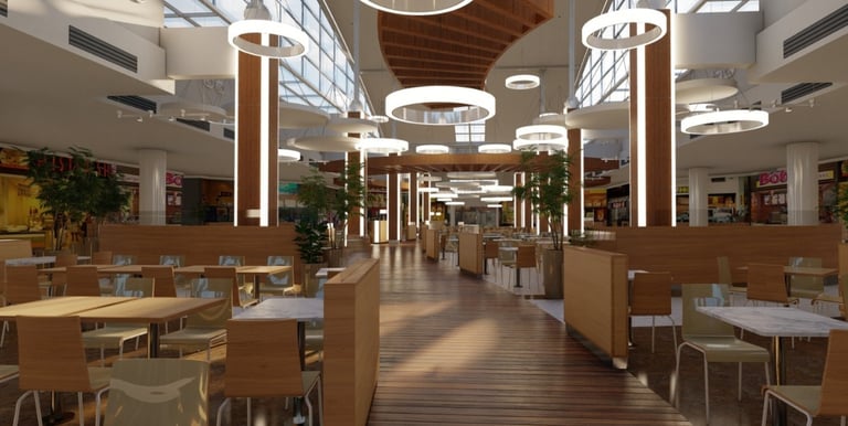 Modelo específico para atendimento de praças de alimentação de shopping centers ou malls.